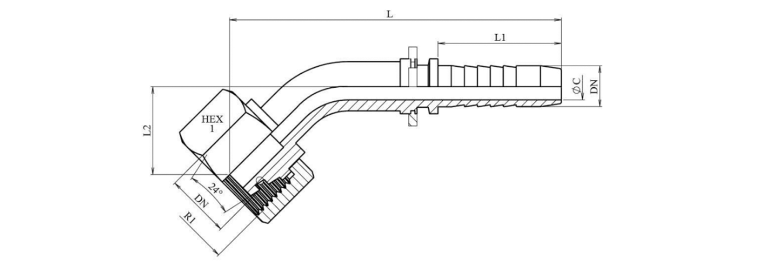 RACCORD HYDRAULIQUE DKOL 15 L AVEC COUDE FEMELLE 45 DN12-M22X1,5