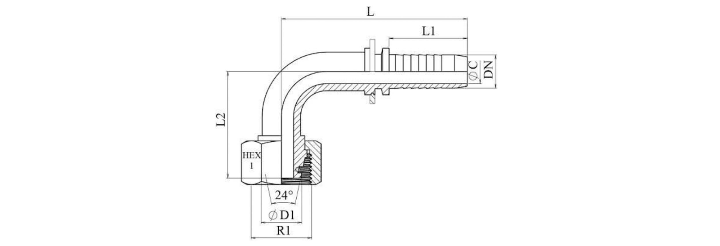 HIDRAVLIČNI PRIKLJUČEK DKOS 8 S ŽENSKI KOLENO 90 DN6-M16x1,5