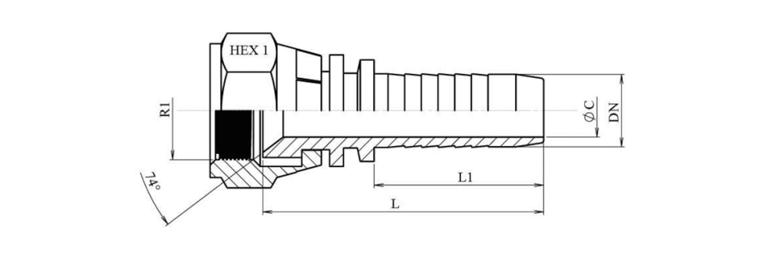 COLLEGAMENTO IDRAULICO DKJ JIC74° FEMMINA DN25-1 5/8-12