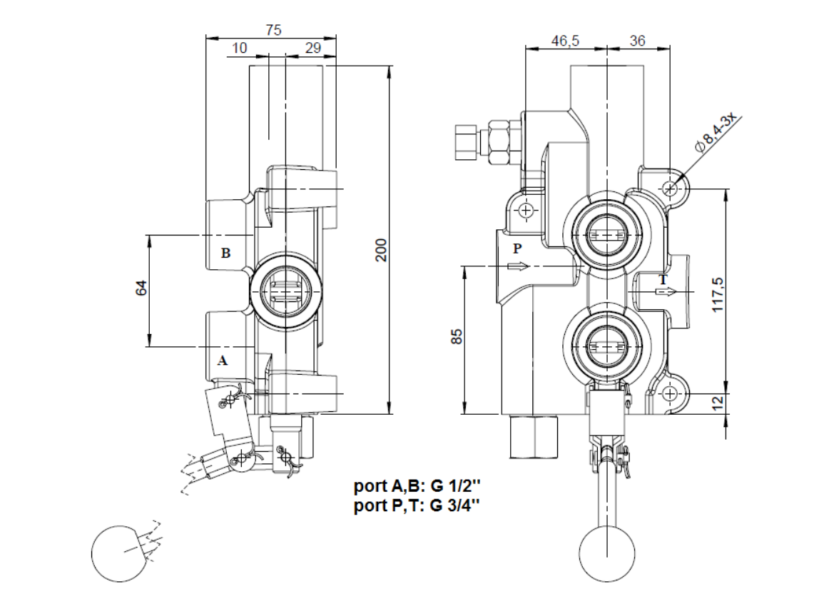 | Filettatura di collegamento: | Porta P e T – 3/4", porta A e B – 1/2" |