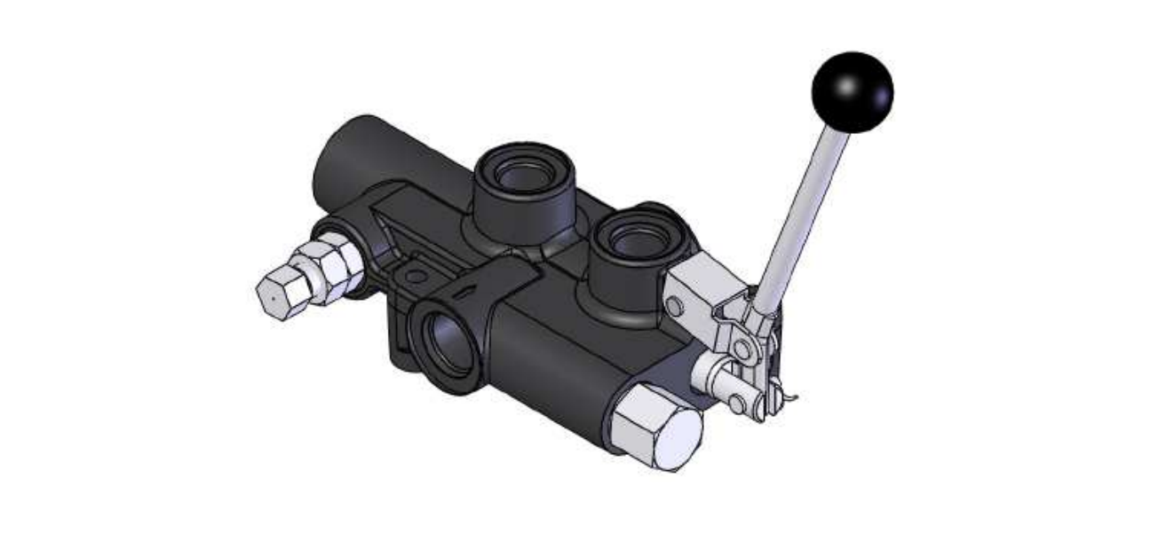 La valvola idraulica P81 è progettata per l’uso su spaccalegna. Presenta un funzionamento a ritorno con molla in una direzione e un sistema di sgancio pressione nella direzione opposta, che fa ritornare automaticamente la leva in posizione neutra. La valvola P81 include anche una valvola di sicurezza a sfiato regolabile manualmente.