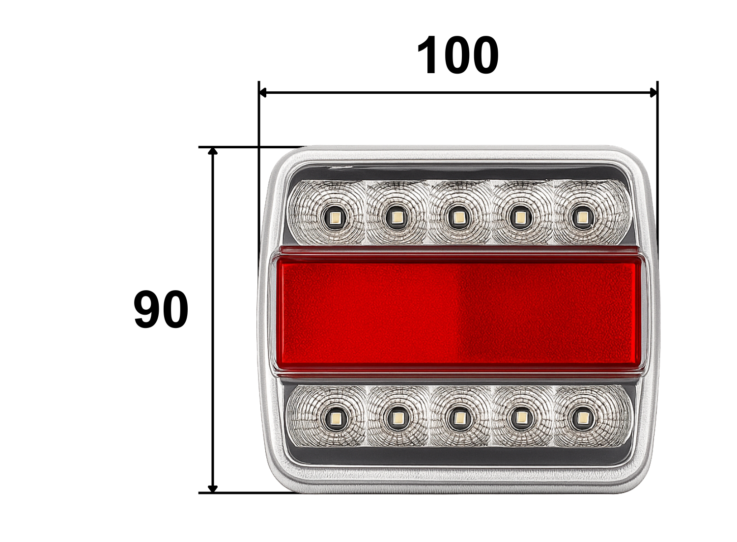 LED luč s štirimi funkcijami: Pozicijska luč, STOP luč, smerokaz, osvetljitev registrske tablice. Lahko se namesti na levo ali desno stran.