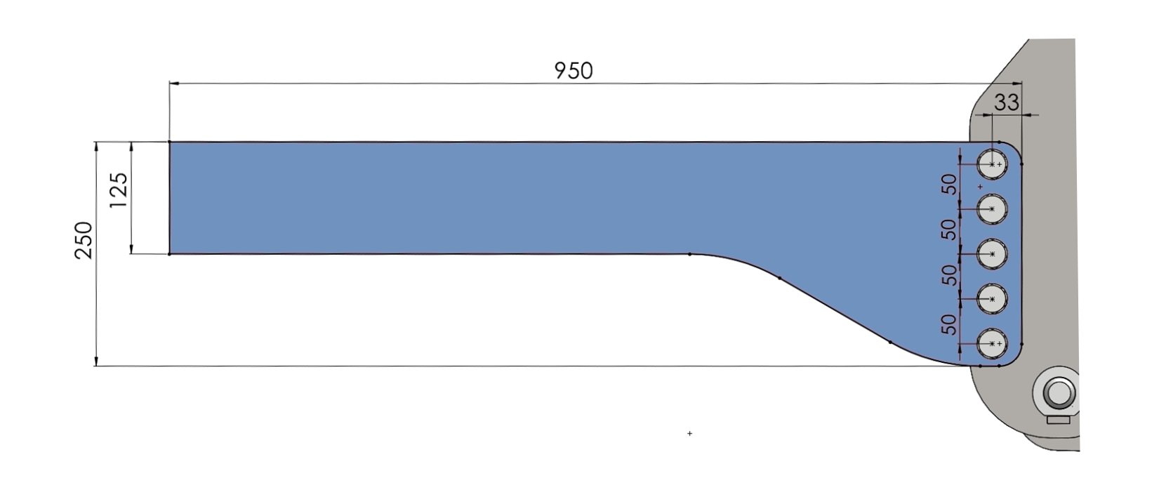 950 mm ilgio plokštę galima nukirpti iki pageidaujamo ilgio, o montavimo skylės išgręžiamos pagal traktoriaus modelį.