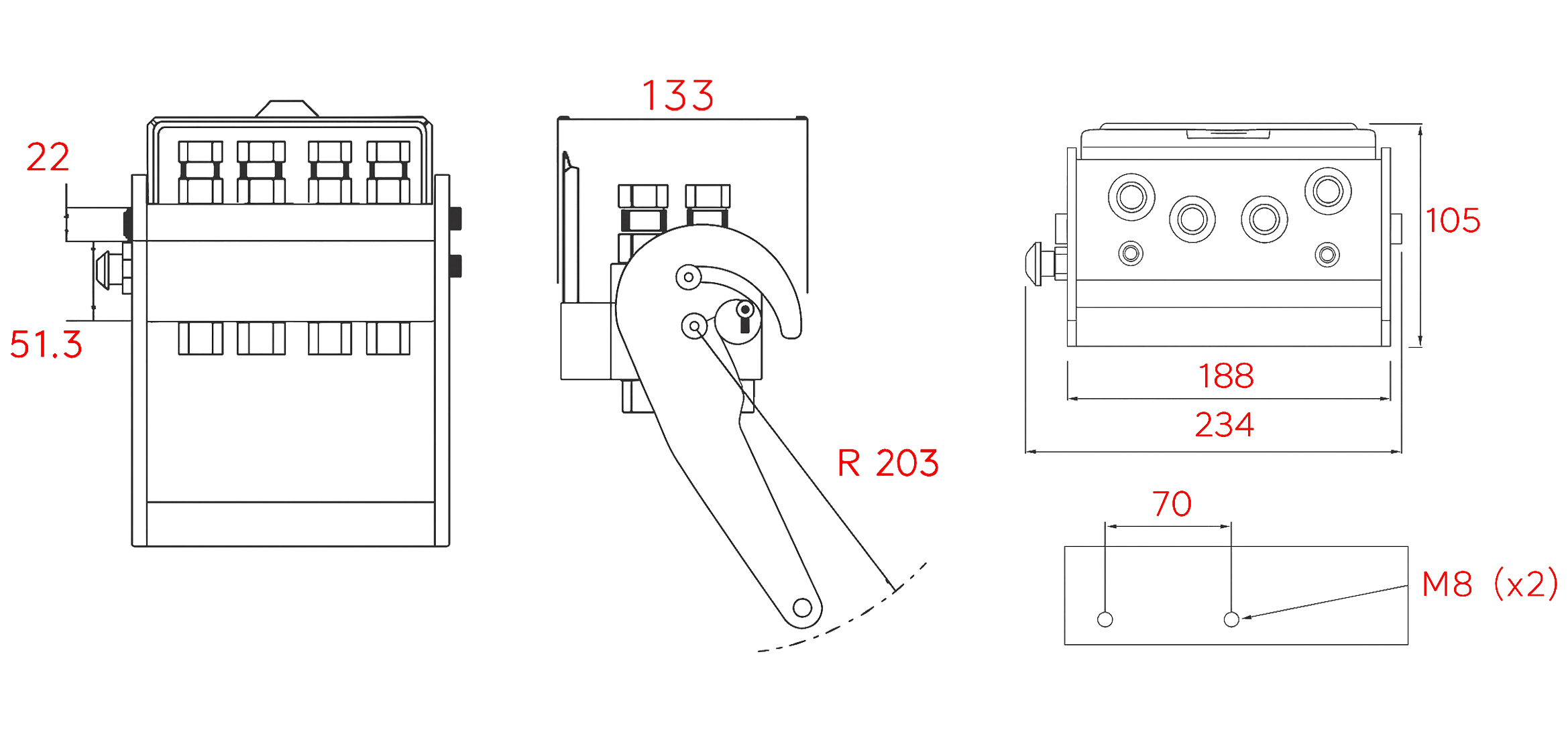 - Industriële apparatuur en testbanken: voor snelle vervanging van hydraulische modules of tijdens testen.