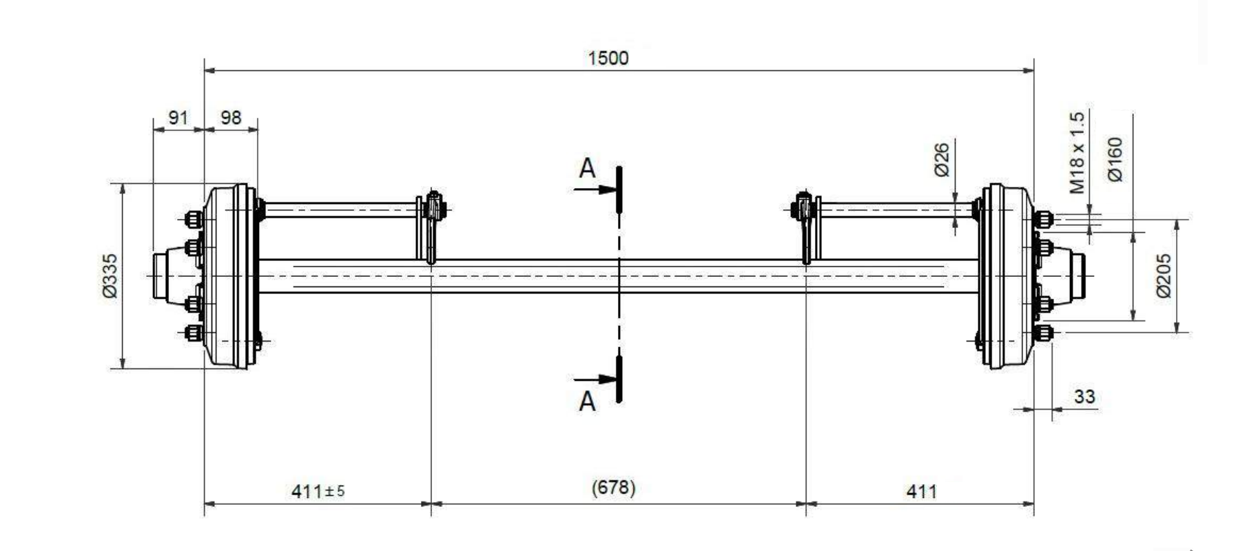 OSOVINA ZA PRIKOLICO Z ZAVORAMI (6 VIJAKOV) - 4800 kg - 1500 mm