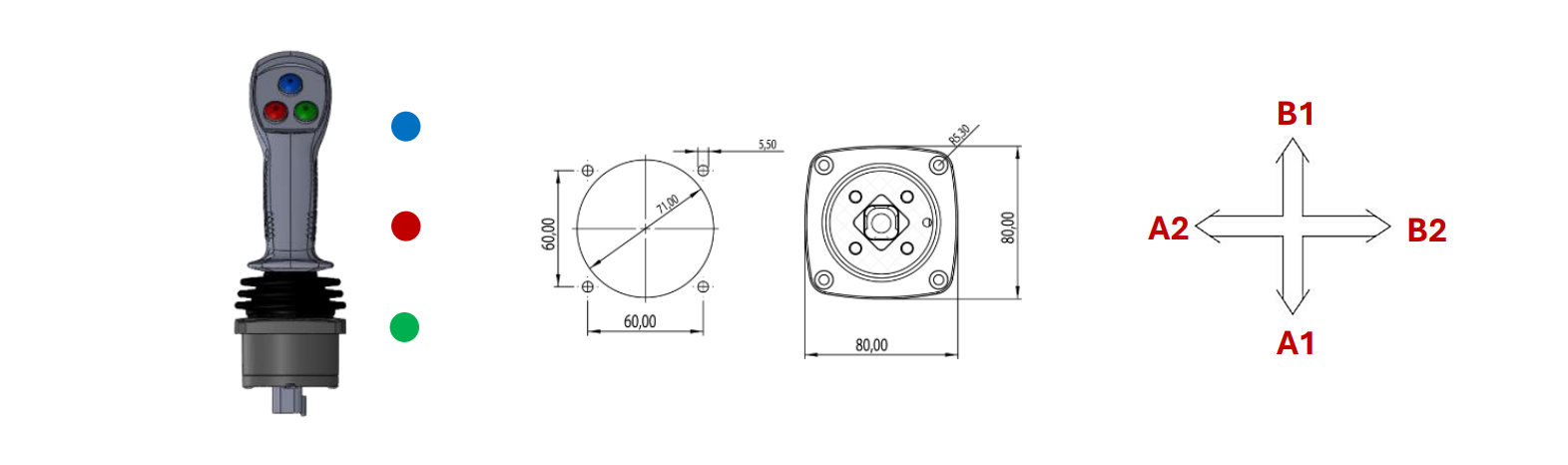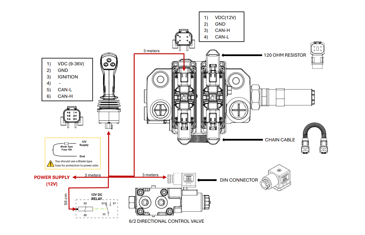 De set bevat het ventiel, een proportionele bedieningsjoystick en elektrische bekabeling.