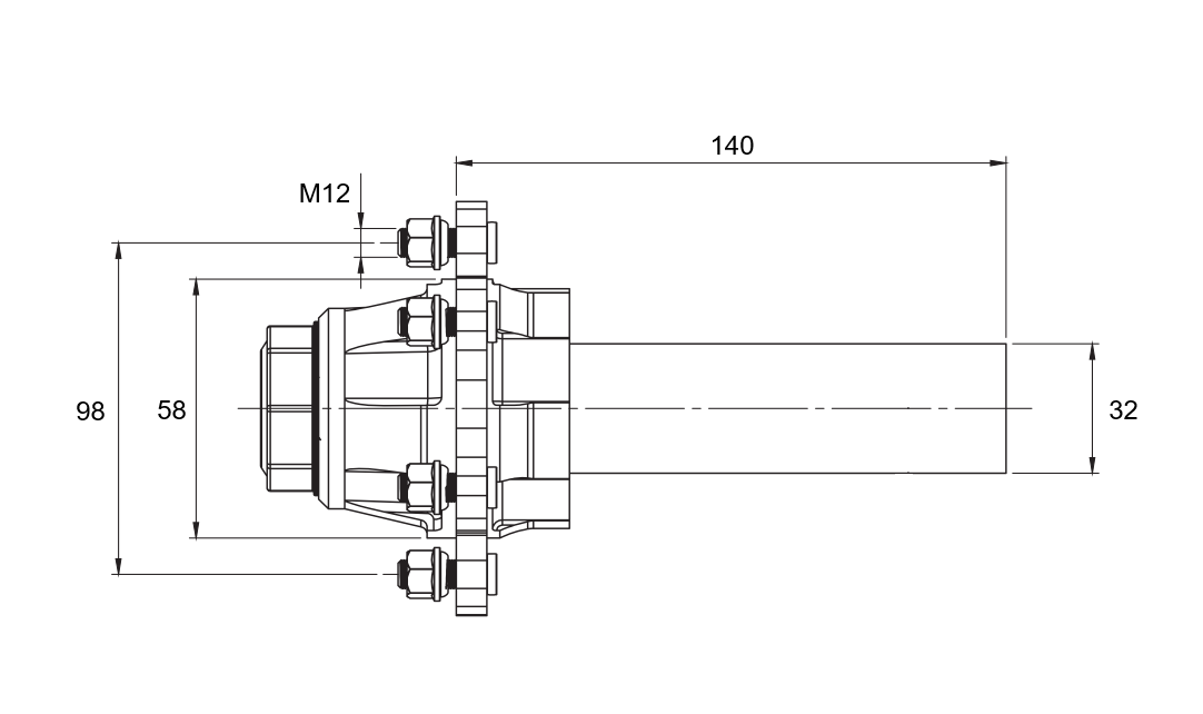 Zaradi robustne izdelave in zanesljive konstrukcije je primerna za uporabo na tovornih in delovnih prikolicah, industrijskih podvozjih, transportnih okvirjih ter drugih tehničnih rešitvah, kjer je potrebna stabilna in vzdržljiva osna podpora kolesa.