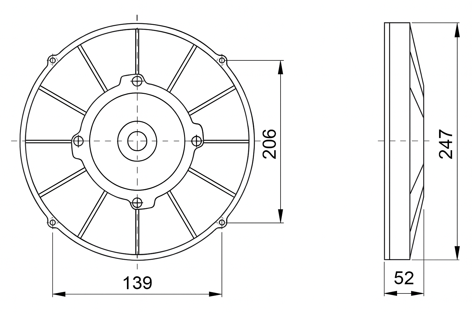 VENTILATOR AKSIALNI 225mm POTISNI 12V